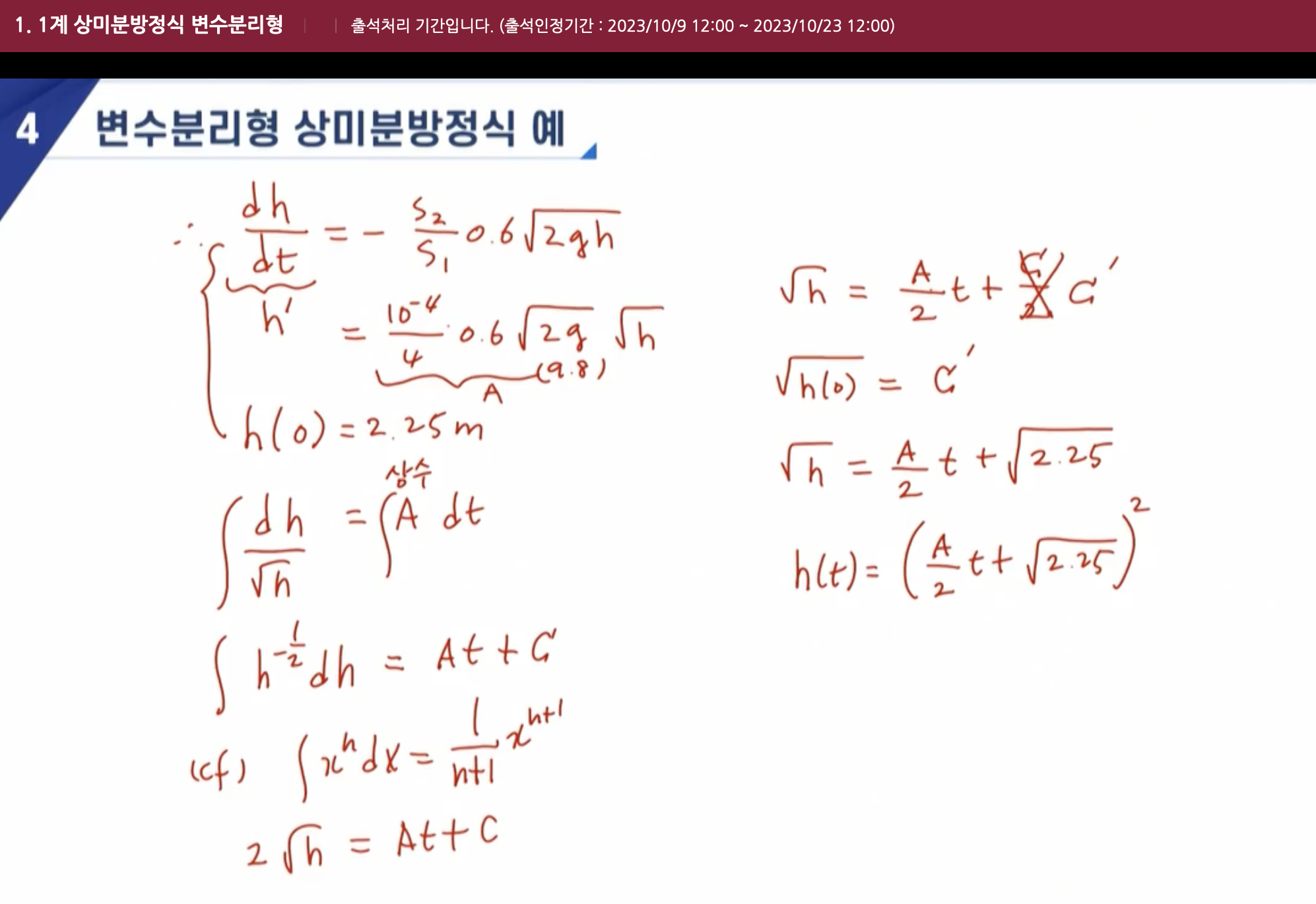 7주차. 1계 상미분방정식 변수분리형, 완전/불완전 상미분 방정식