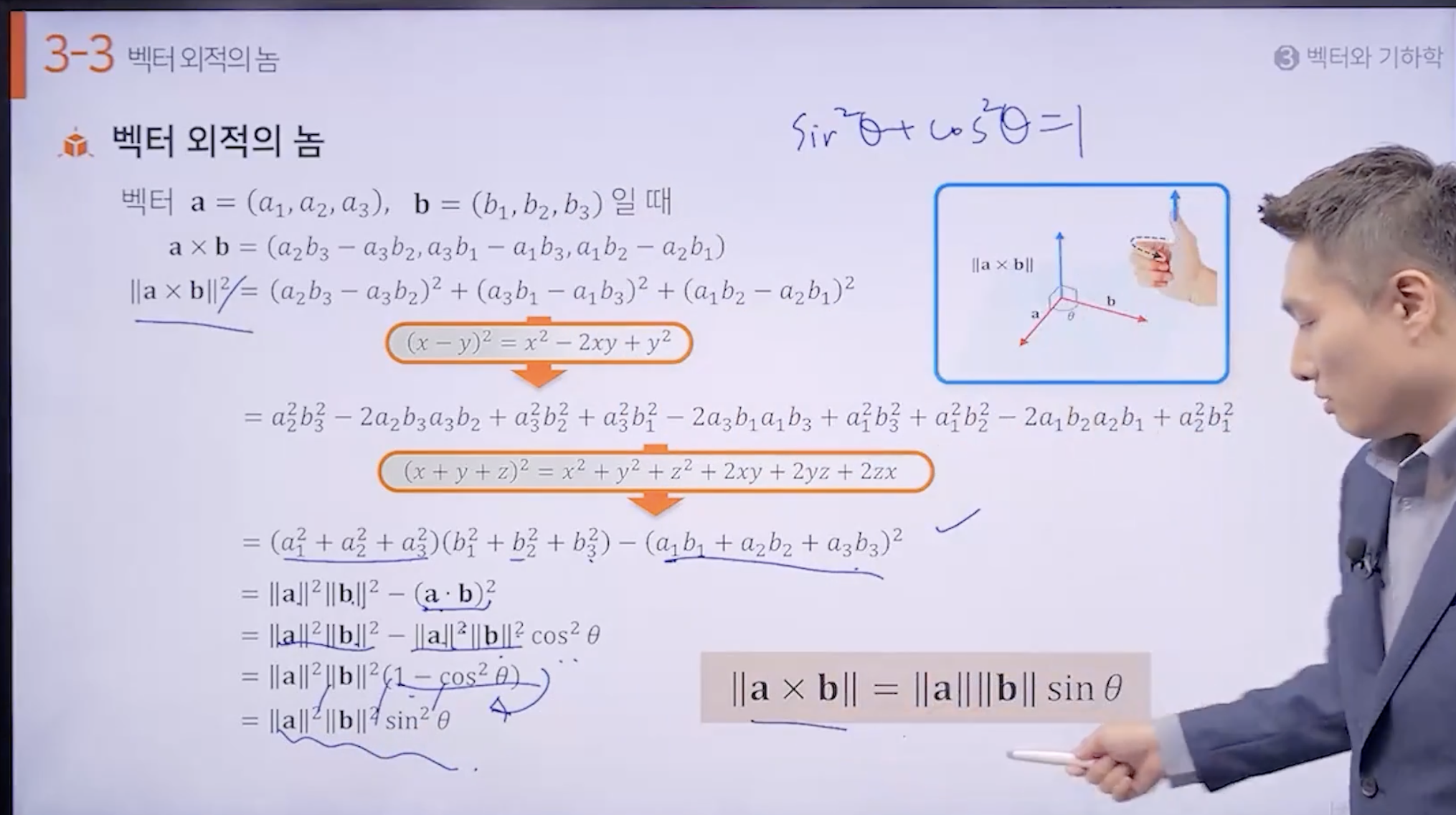 선형대수학(3) - 벡터의 외적, 내적, 기하학