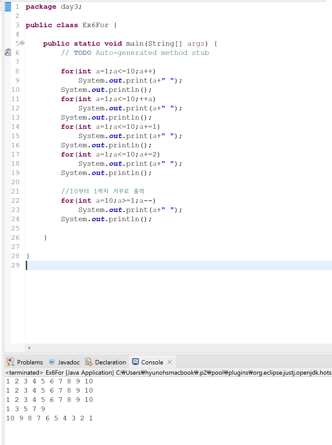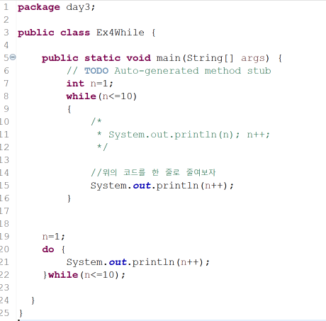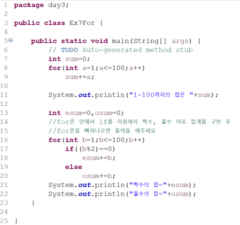 -continue 용법 -> 남은 코드를 실행하지 않고 증감식으로 이동