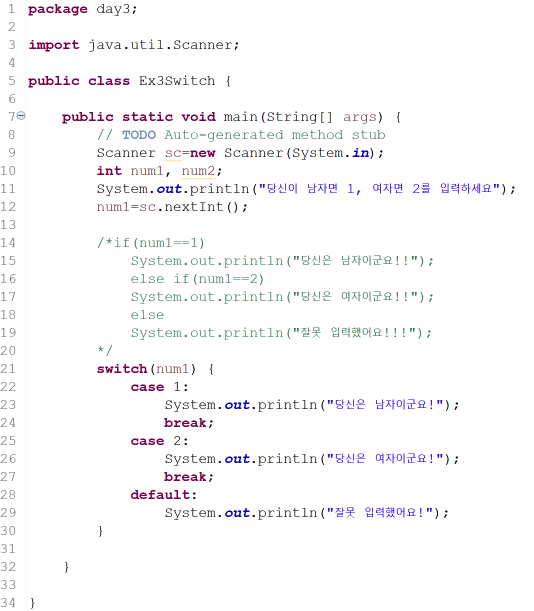 -switch문 쓸 때 괄호 안의 변수 값이 case 값과 같을 경우를 분기하는 것임
